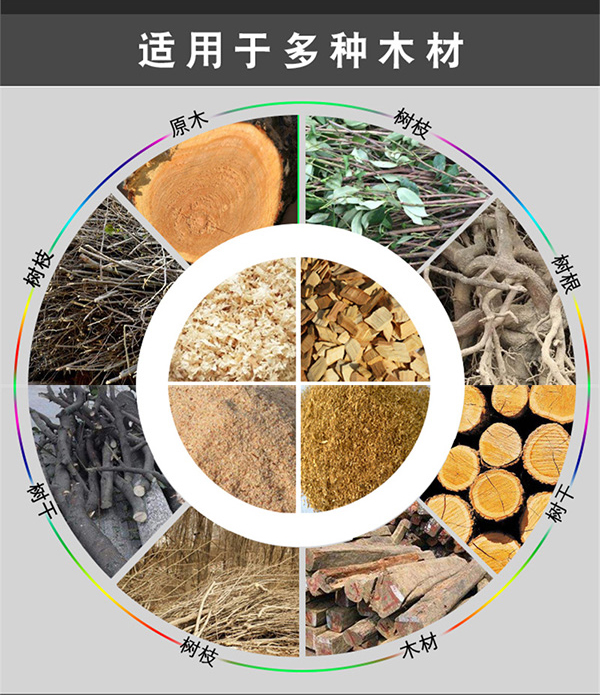 適用于粉碎:雜木、樹枝(干濕皆可)、玉米芯、下腳料,建筑腳板、樹皮、樹葉等。(注意,木材粉碎機(jī)不適用于易燃易爆物料的粉碎加工)